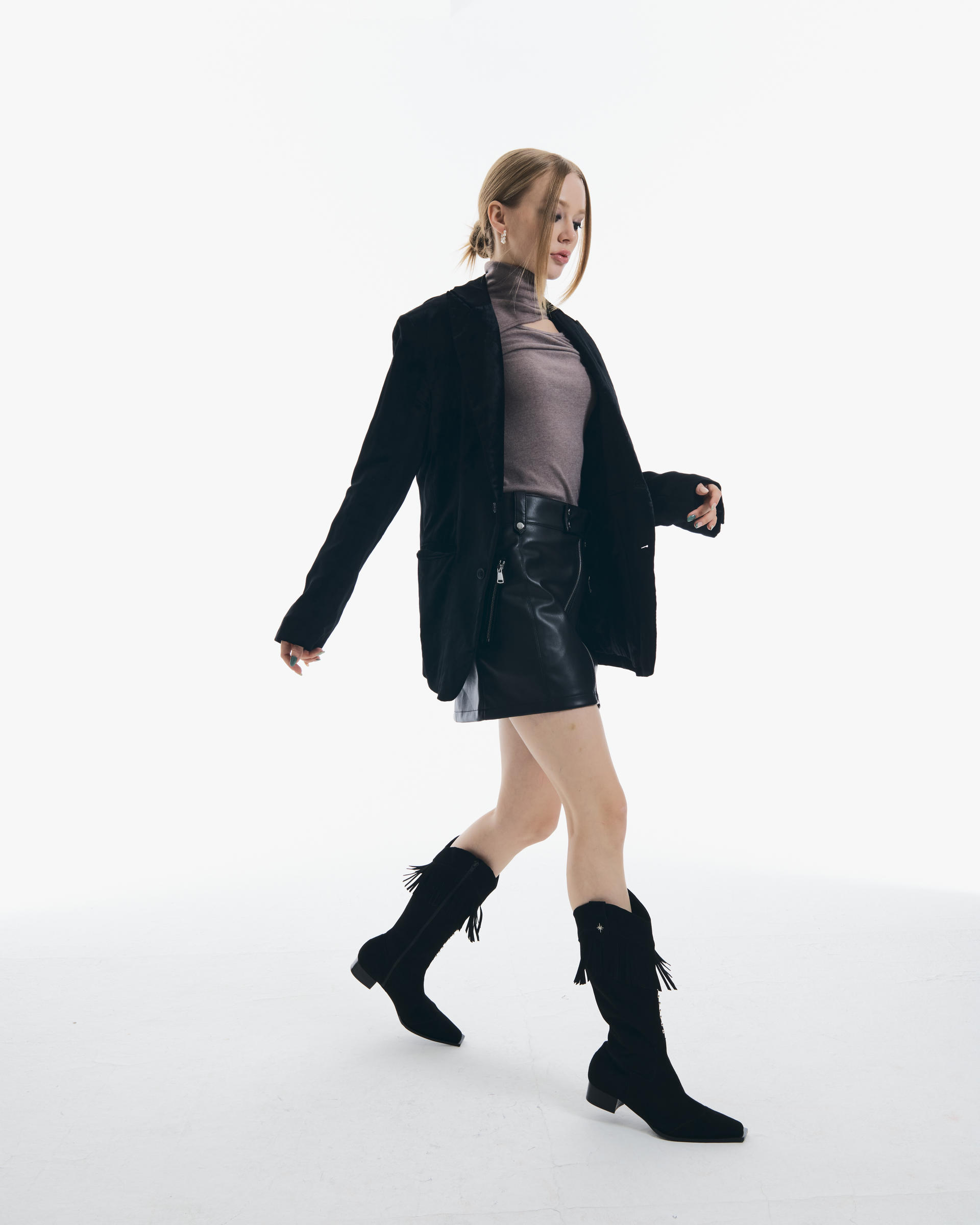 부츠높이는 뒤꿈치 끝에서 수직으로 측정합니다.
