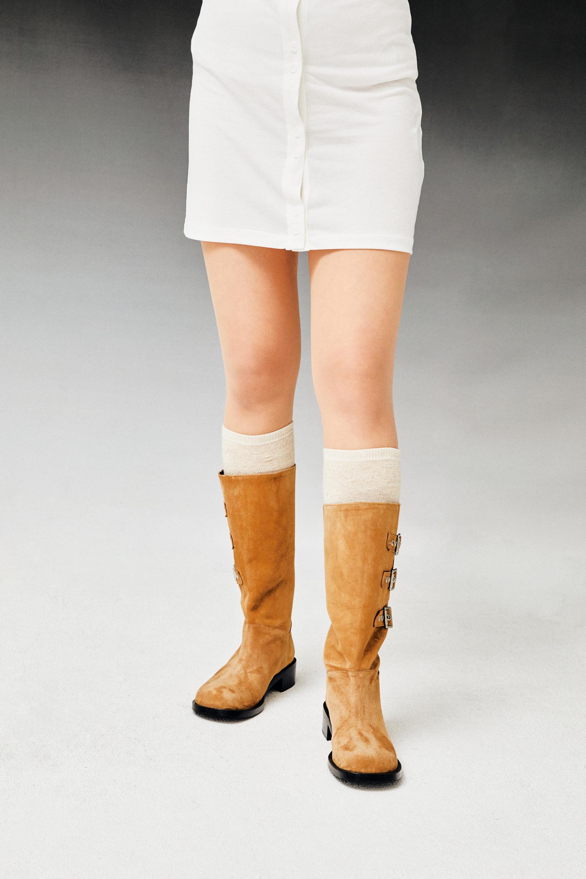 부츠높이는 뒤꿈치 끝에서 수직으로 측정합니다.