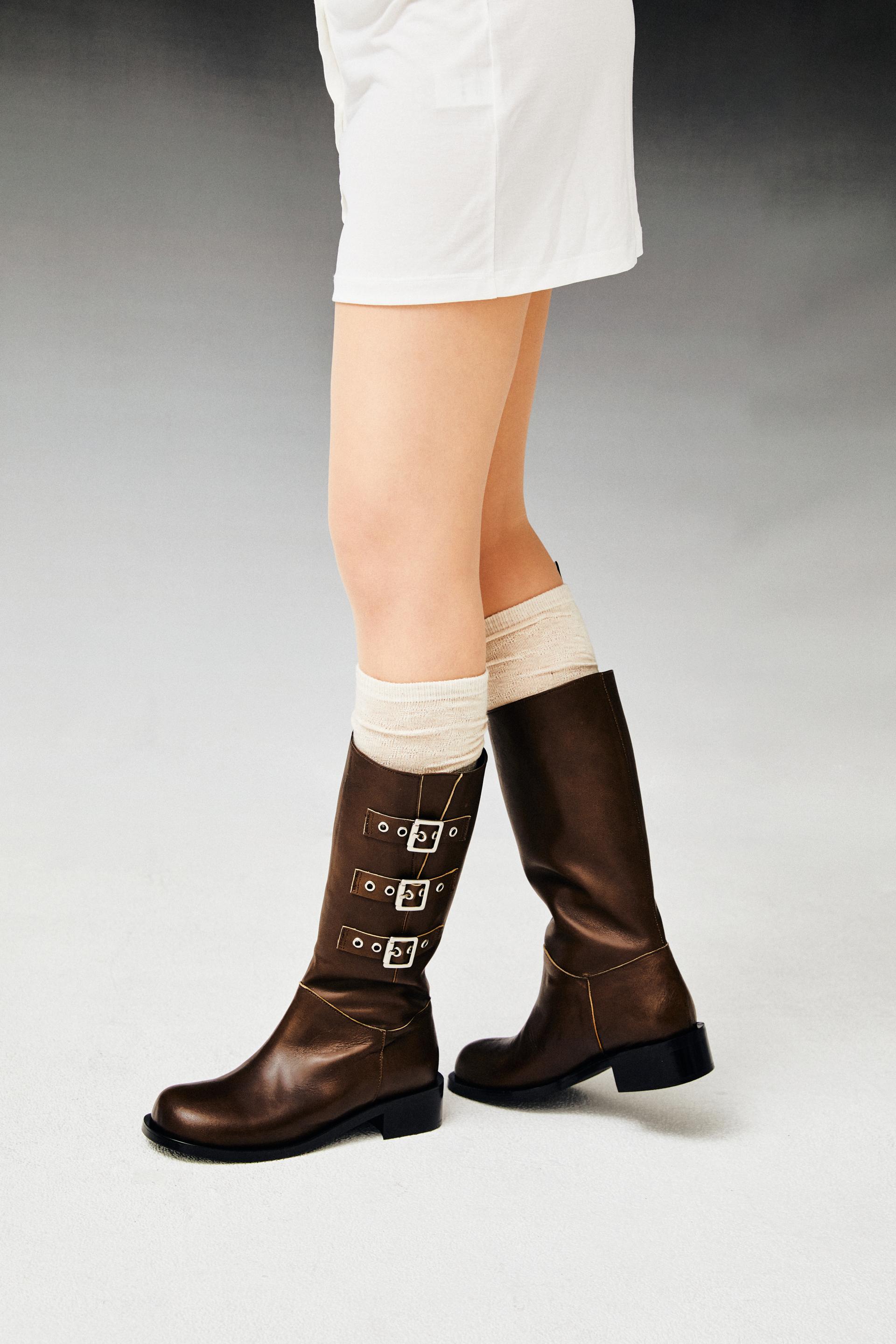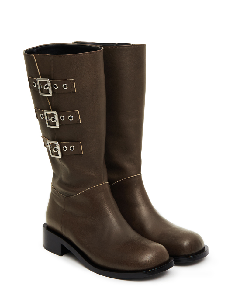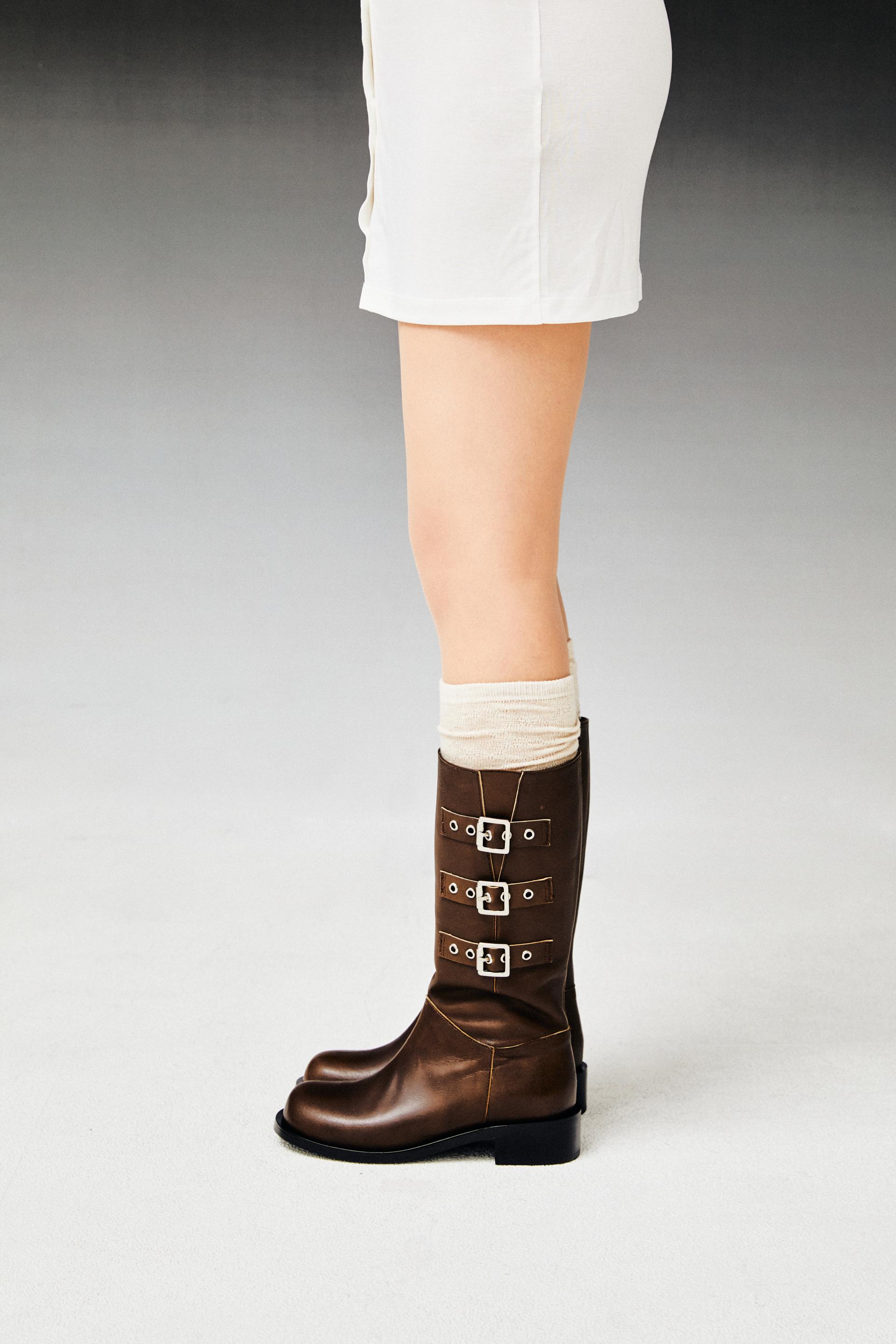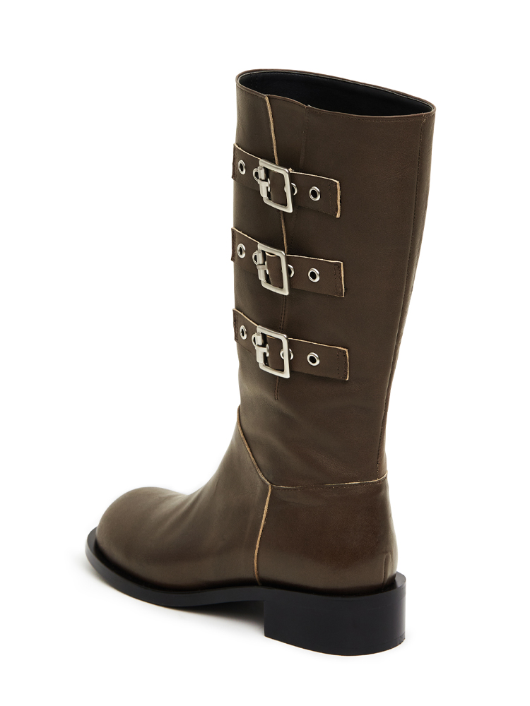 Three belted biker boots (vintage brown)