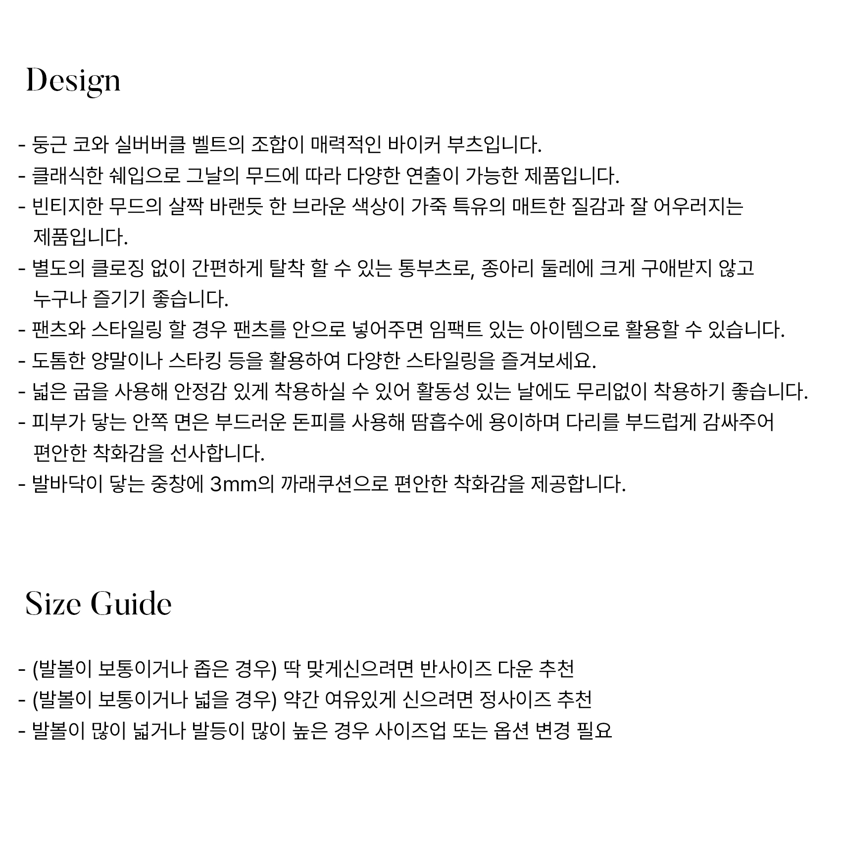 - 옵션(발볼/발등) 변경시 교환 및 반품 불가