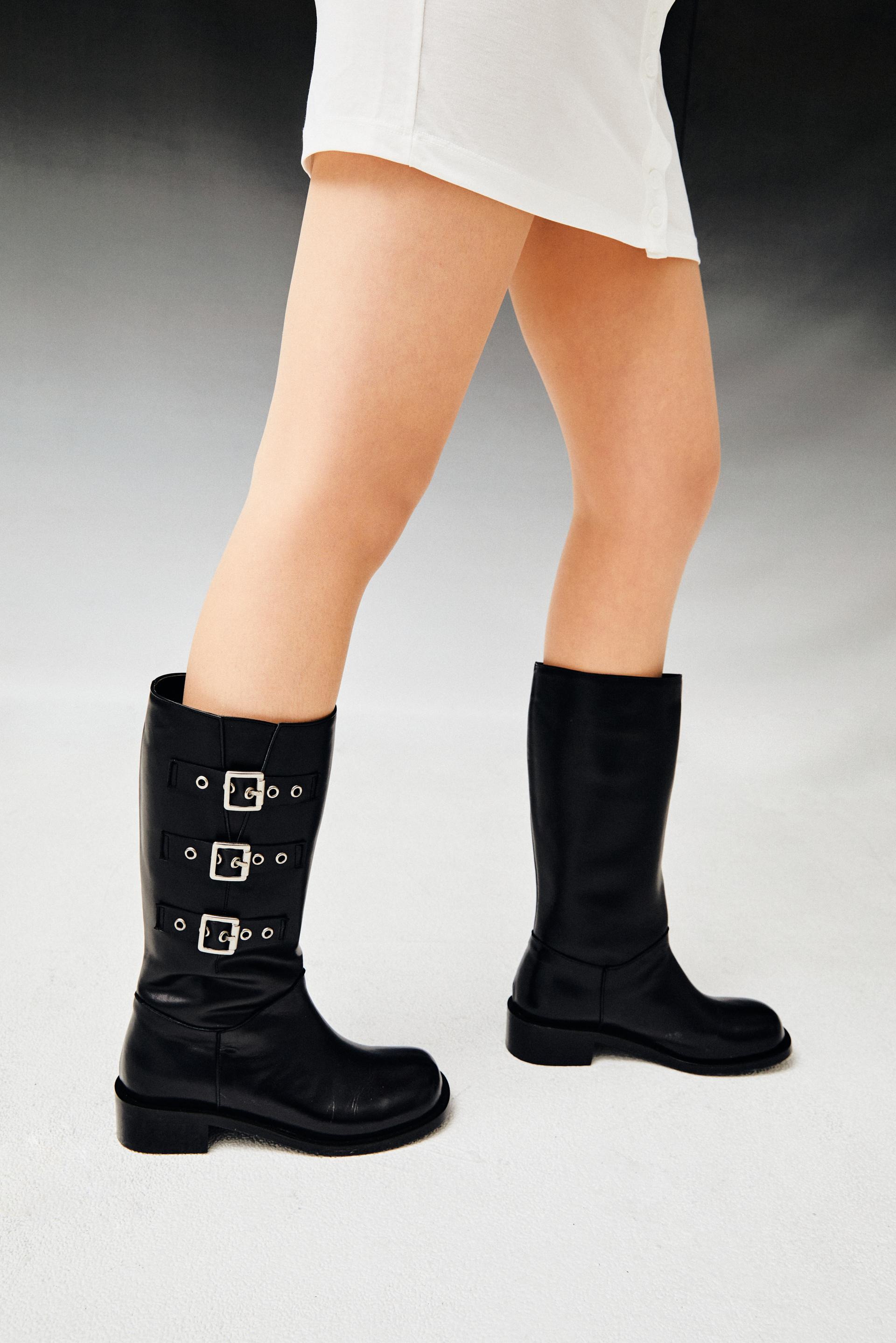 Three belted biker boots (black)